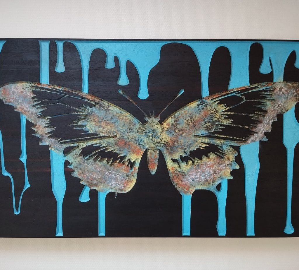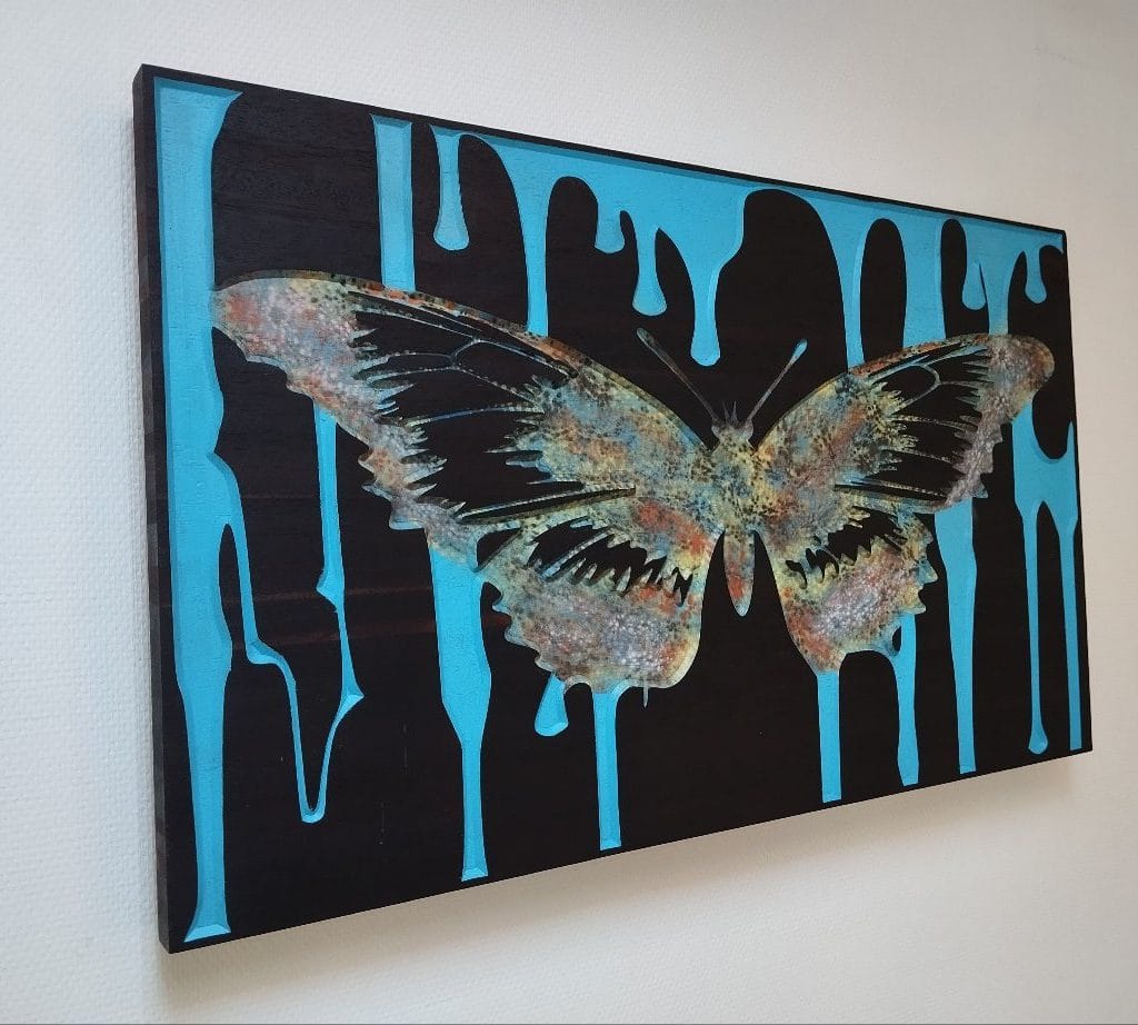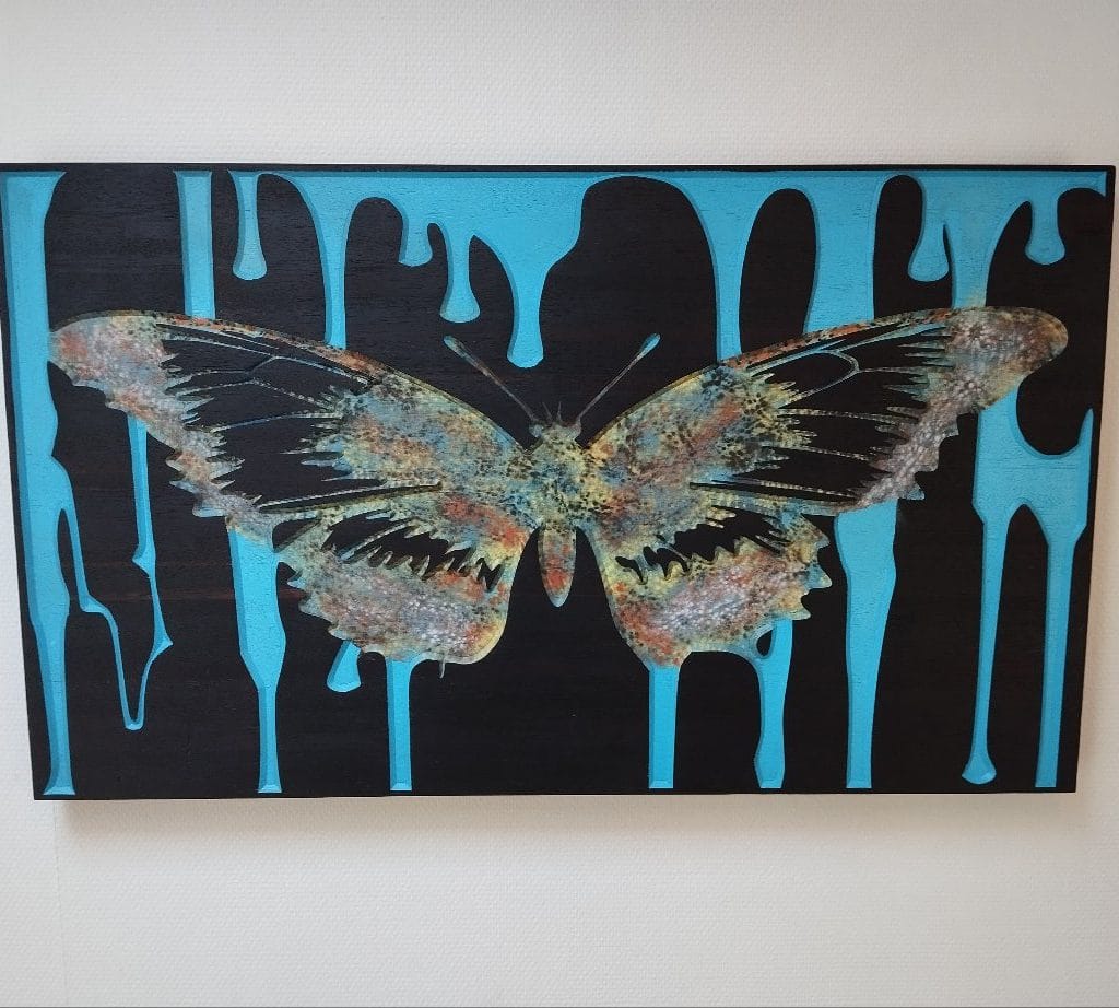 “Acid” Gemaakt van Sapeli met blauwe epoxy