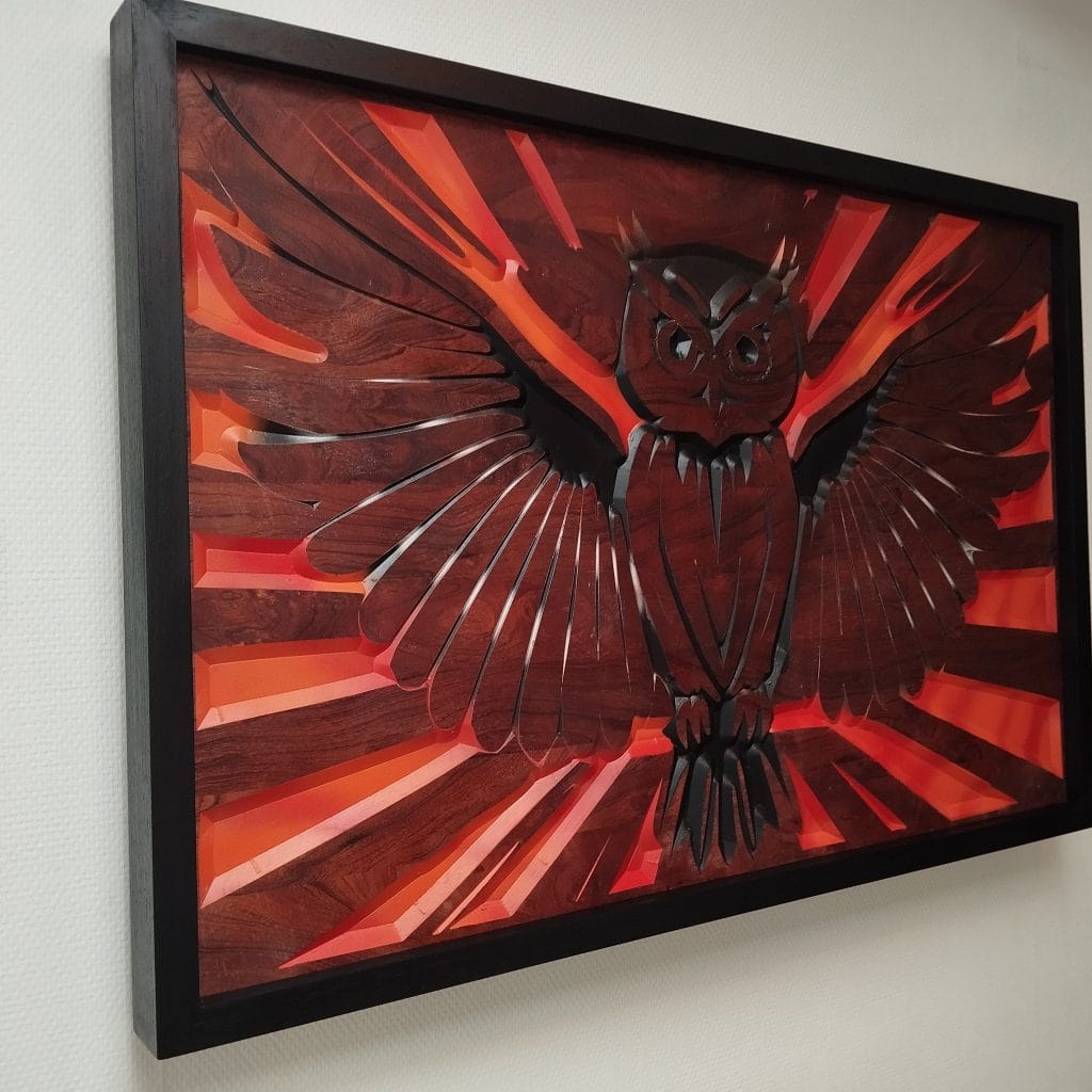 “Hypnotic” Gemaakt van een bijzonder soort multiplex (foto bij klant thuis)